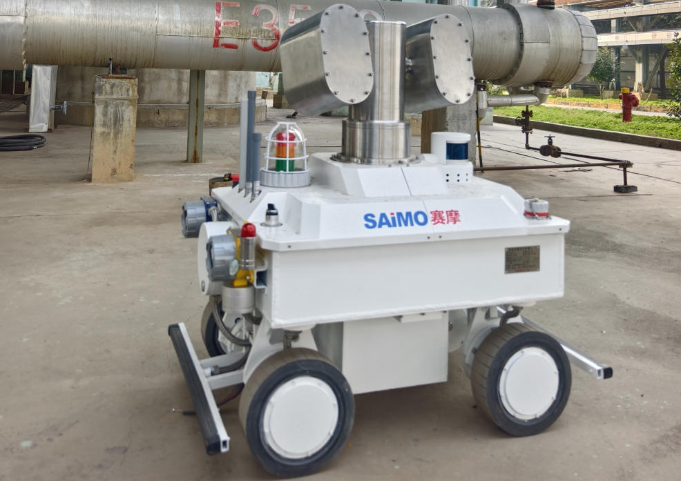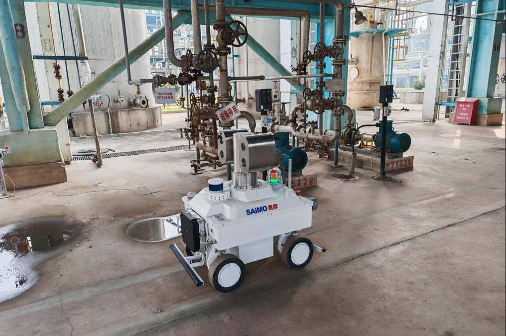 洛阳赛摩科创有限公司利用上市公司在智能制造生态圈中积累的系统集成核心优势,以技术整合为抓手,与合作伙伴在技术上深度协同,构建适配化工行业巡检工序的专业化应用解决方案, “SMKC-RTLS-C7型防爆轮式巡检机器人”。